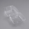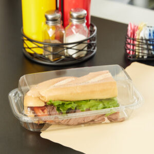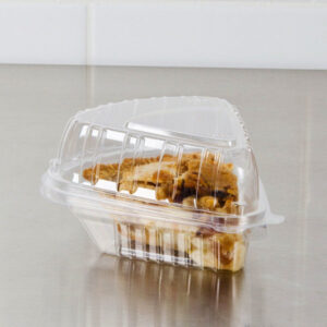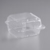 Send desserts, pastries, salads, and specialty sandwiches home with your customers in this clear hinged container! Measuring 6″ x 6″ x 3″, this container is perfectly sized for a wide variety of products. It is a tremendous addition to delis, supermarkets, cafes, and virtually any other operation that offers take-out.