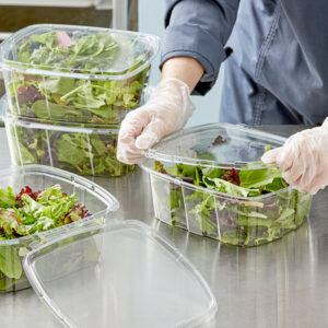 The container’s crystal clear OPS construction allows customers to immediately identify all of your best take-out offerings. This allows your richly decadent desserts and crisp green salads to effectively market themselves and boost impulse sales.