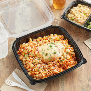 This container offers an ample capacity that’s perfect for holding specialty meals from restaurants, bars, buffets, catering companies, or ghost kitchens. It features a 100% recyclable design to help reduce your impact on the environment! Plus, its flat top and bottom ensure easy stacking in to-go bags. Great for packaging pastas, sandwiches, salads, or hot dishes, this item is a versatile addition to any establishment.