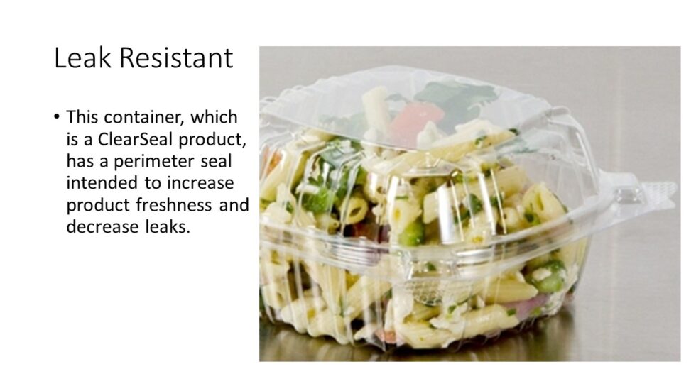 - This container, which is a ClearSeal product, has a perimeter seal intended to increase product freshness and decrease leaks.