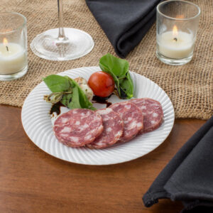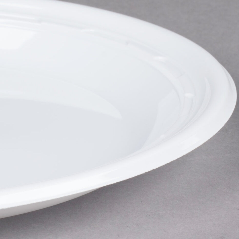 This plate is made from high-impact polystyrene, making it impervious to condiments and cutlery. In addition, the plate’s superior rigidity prevents it from bending under the weight of weighty foods. This impact plastic dinnerware aligns more closely than foam options, allowing you to save valuable storage space, while the wide rim prevents food from spilling off the plate.