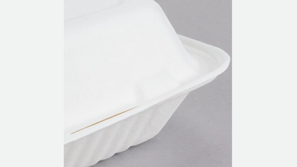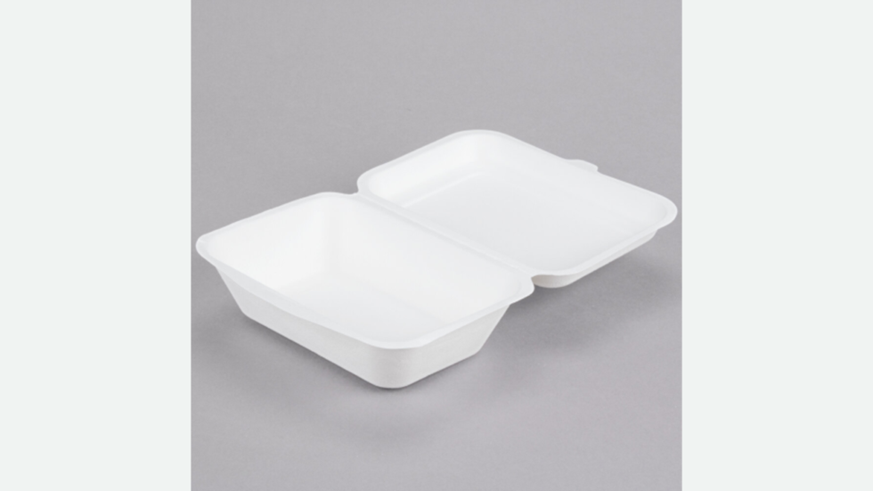 - This rectangular takeaway box is 100% compostable and made from sugarcane / bagasse material, reducing the environmental effect of your establishment. While other throwaway products are burned when discarded, polluting the environment, this may be refilled and recycled. Furthermore, the incredibly sturdy material is cut and grease resistant, allowing you to use it for a wide range of foods!