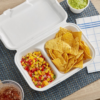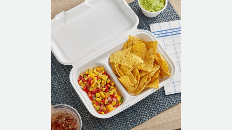 - The EcoChoice 9″ x 6″ x 3″ compostable sugarcane / bagasse 2 compartment takeaway box is ideal for restaurants, caterers and sandwich shops that provide a variety of hot and cold dishes. With this ecologically friendly option, you may package up takeaway orders or leftovers for your customers while also taking a step towards going green!
