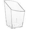 Want to improve your entrée service? The Choice 2.3 oz. clear plastic minuscule angled appetizer cup is your best option! These petite serving dishes have a modern, angled design that adds a hint of timeless elegance to appetizers and canapés. The 2.3 oz capacity enables you to present a variety of delectable items with simplicity.