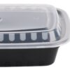 Choice 24 oz. Black Rectangular Microwavable Heavy Weight Container with Lid 8″ x 5 1/4″ x 2″ – 150/Case