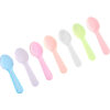 Coming in an assortment of colors including red, blue, pink, yellow, purple, orange, and clear, this attractive spoon is sure to add a fun touch to your miniature servings. Its extremely versatile design makes it an ideal addition to food trucks, ice cream parlors, and bakeries.