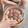 Constructed of recyclable, clear PET plastic, this flexible lid is perfect for your restaurants, delis, food trucks, and cafes. The clear construction also allows for optimal visibility. Plus, this lid is disposable for added convenience.