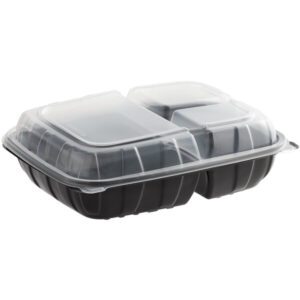 Choice 48 oz. Black 9″ Round Microwavable Heavy Weight Container with Lid