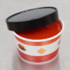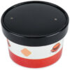 Engage your customers by offering to-go soups, stews, chilis, and more in this paper hot food cup. Featuring colorful imagery, this container serves as an advertisement for hungry guests passing through your convenience store, cafe, or grocery store. While the bright, colorful graphics are sure to draw attention, the sleek black lid provides a striking contrast to the container itself, too.