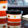 Rustic orange and red pattern notifies guests of hot contents
