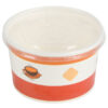 Engage your customers by offering to-go soups, stews, chilis, and more in this paper hot food cup. Featuring colorful imagery, this container serves as an advertisement for hungry guests passing through your convenience store, cafe, or grocery store. While the bright, colorful graphics are sure to draw attention, the clear plastic lid lets the contents of the cup show through, adding even more visual appeal.