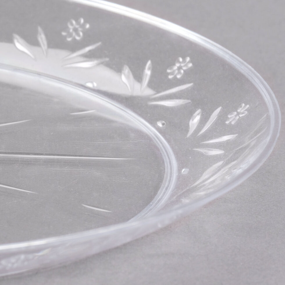 This plate’s crystal-clear construction and intricately-detailed designs on its smooth surface are ideal for displaying colourful appetisers, classic arranged salads, and your signature grilled chicken entrees. In addition, it can be readily discarded for quick cleanup after a party or event. This dish is the ideal solution for sophisticated and convenient dining in any setting!