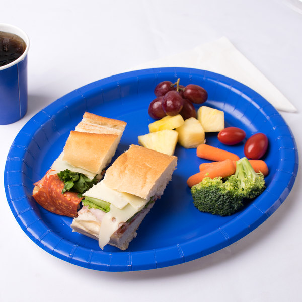 Everything begins with colour! This 12″ x 10″ Cobalt Blue oval paper platter from Creative Converting is ideal for parties, buffets, and catered events. Its classic white colour enhances your dining environment and cayour event’s theme and decor. This heavy-duty platter is made from premium-strength paper and is able to support robust dishecelebration n be readily combined with other colours to complement is over, the platter’s disposable design makes cleanup easy.s!