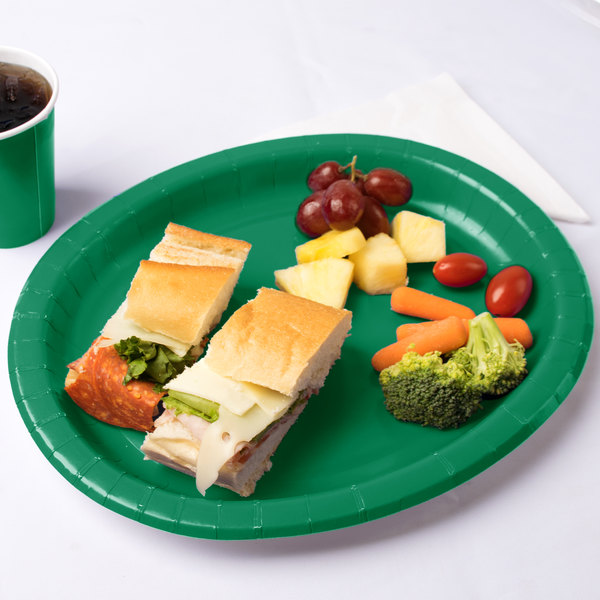 Everything begins with colour! This 12″ x 10″ Emerald Green oval paper platter from Creative Converting is ideal for parties, buffets, and catered events. Its classic white colour enhances your dining environment and cayour event’s theme and decor. This heavy-duty platter is made from premium-strength paper and is able to support robust dishecelebration n be readily combined with other colours to complement is over, the platter’s disposable design makes cleanup easy.s!