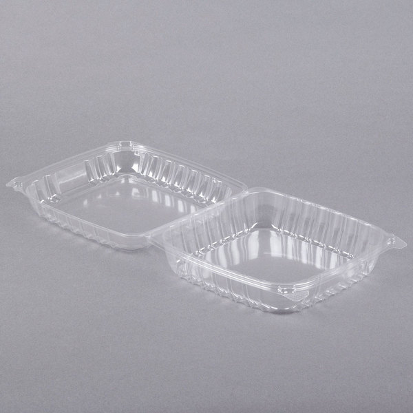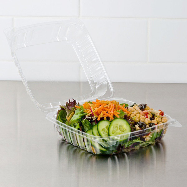 This clear hinged container allows your customers to take home salads, sandwiches, pastries, and pasta for the ultimate dining experience. This OPS plastic container is ideal for delis, concession stands, food trucks, cafés, and any other take-out food service establishment.