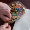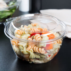 This PET plastic container’s tamper alert hinge remains attached to the container, eliminating loose plastic pieces as well as the need for shrink bands and wrap labels, saving your business time and money, and reducing waste. The flat lid is easy to re-close and re-open, and functions as a leak resistant, two-piece container after the hinge has been torn. Separation lugs allow customers to easily grab nesting or stacked containers, and the offset opening tabs with “Lift” and “Hold” instructions make opening containers simple. Use this container to hold bulk food, dips, salads, fruits and veggies and more at your deli, salad bar or grab-and-go counter.