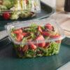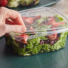 A cleverly engineered top indent simplifies stacking when placing multiples of this container in bags for to-go orders or for deli and grocery marketing. A flat bottom assures the container will remain stable on trays or shelves. Additionally, having a transparent structure makes it easy for consumers and staff can quickly identify your items and highlights their brilliant colors.