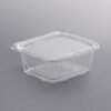 With this Dart ClearPac SafeSeal 32 oz. hinged container, which is tamper-resistant and tamper-evident, you may safely seal a range of foods. This 32 oz. square container from Dart includes a tamper alert hinge that protrudes outward when ripped, informing your consumers that the container has been opened and is specifically intended to prevent tampering. The tamper-alert hinge on this PET plastic container stays connected to the container, removing the need for shrink bands and wrap labels and saving your company money and time while minimizing waste. At your deli, salad bar, or grab-and-go counter, use this container to house bulk food, dips, salads, cereal, fruits, and vegetables.