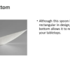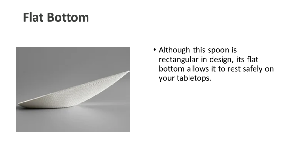 - Although this spoon is rectangular in design, its flat bottom allows it to rest safely on your tabletops.