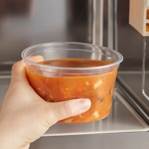 The textured finish of this container feels colder to the touch than traditional microwave containers. It also provides a firm grip in the hands of your employees and consumers, enhancing safety while minimizing messes.