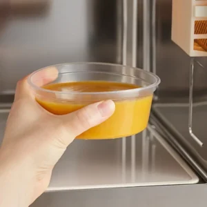 To prevent undesirable spills and messes, this container’s deep shoulders help to contain food.