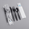 Visions Heavy Weight Black Wrapped Plastic Cutlery Pack with Napkin and Salt and Pepper Packets – 500/Case